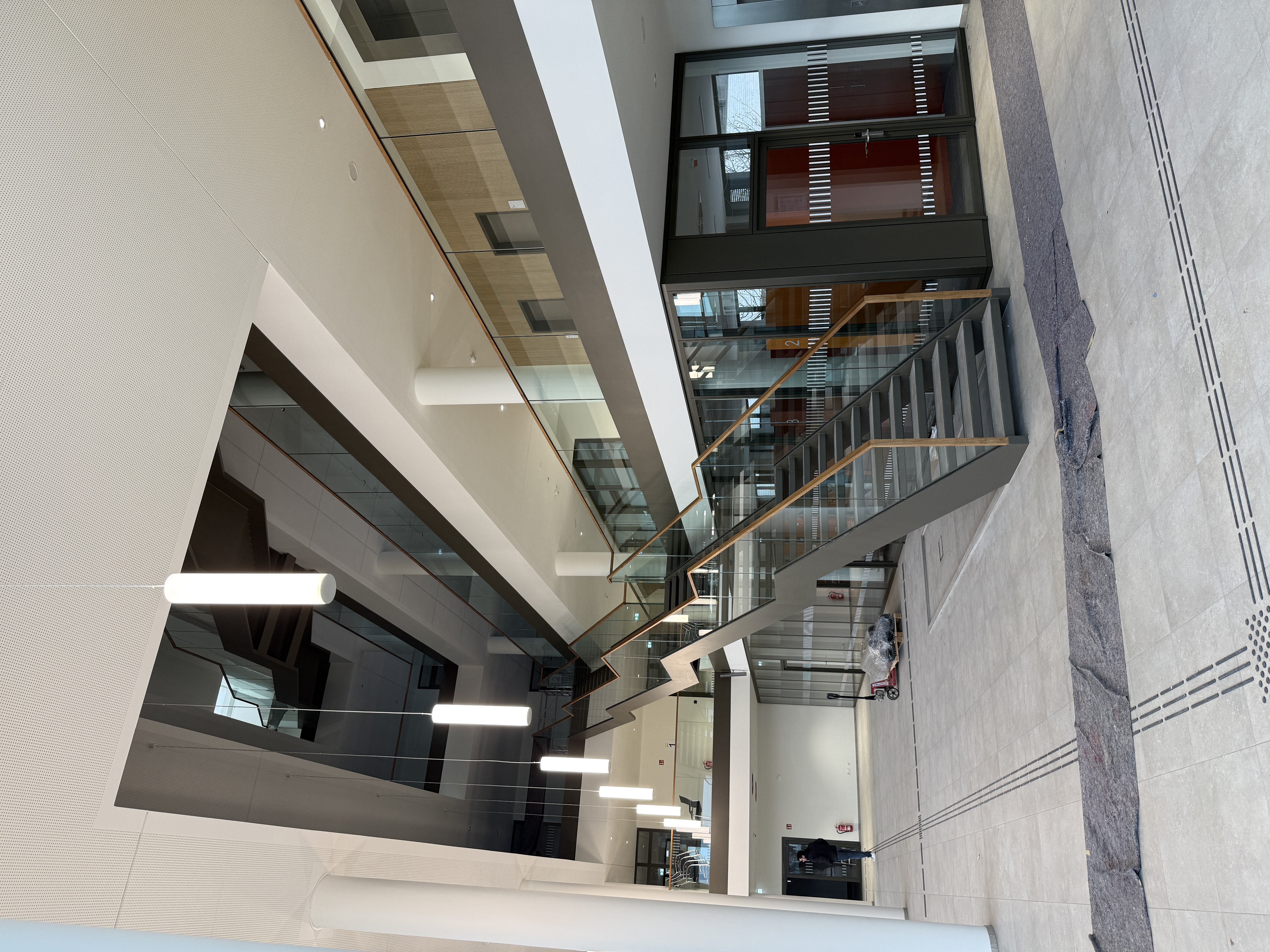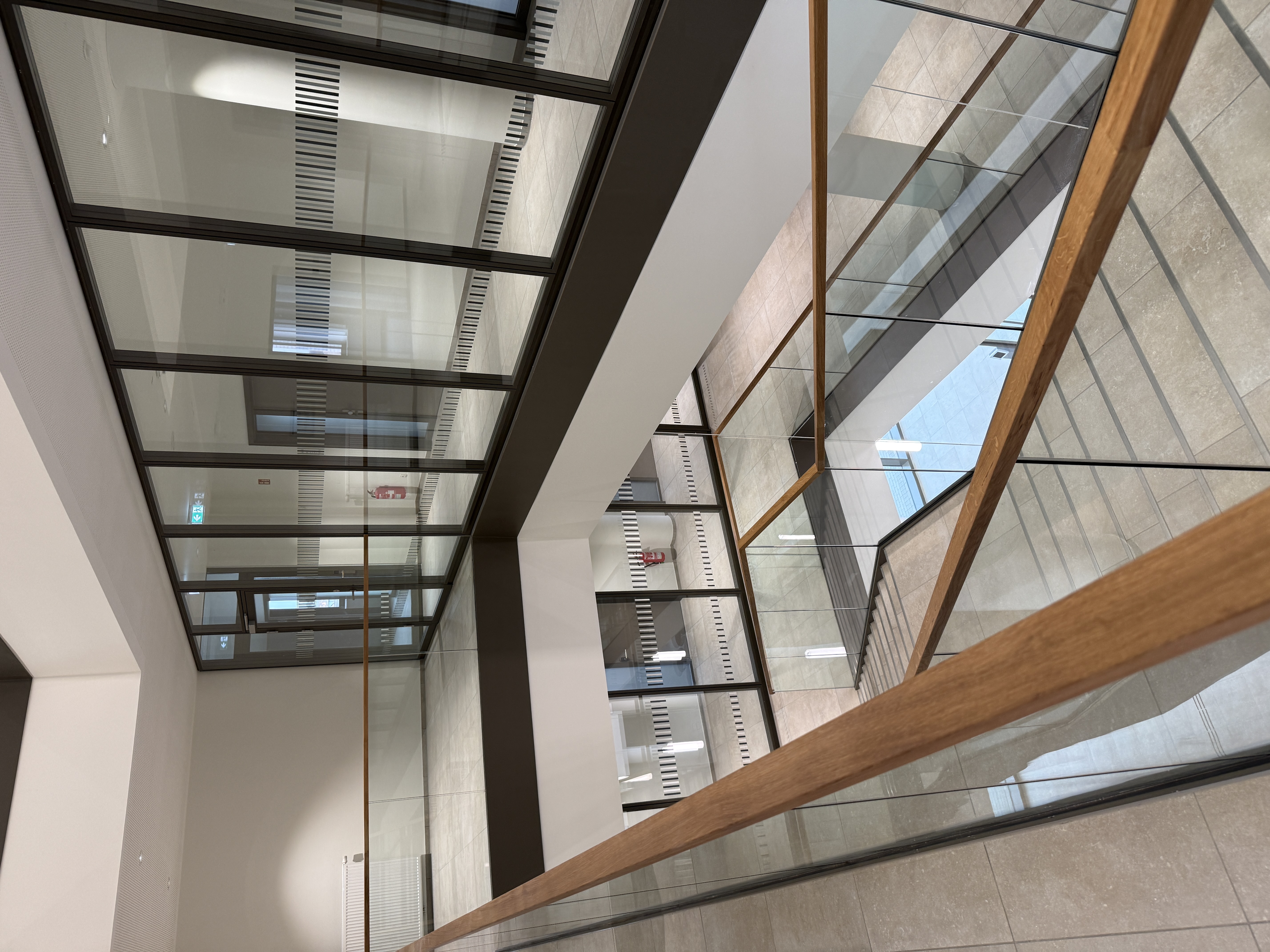 Besonders betont wurde bei der Ausführung der Nachhaltigkeitsaspekt: Ein Zwischenspeicher für Regenwasser, hohe energetische Standards und die Photovoltaik-Integration führten u.a. zur Auszeichnung des Gebäudes mit dem Gold-Zertifikat der Deutschen Gesellschaft für Nachhaltiges Bauen (DGNB) sowie dem Qualitätssiegel Nachhaltiges Gebäude (QNG) des Bundesministeriums für Wohnen, Stadtentwicklung und Bauwesen. Das Brutto-Investitionsvolumen lag bei rund 58 Millionen Euro.