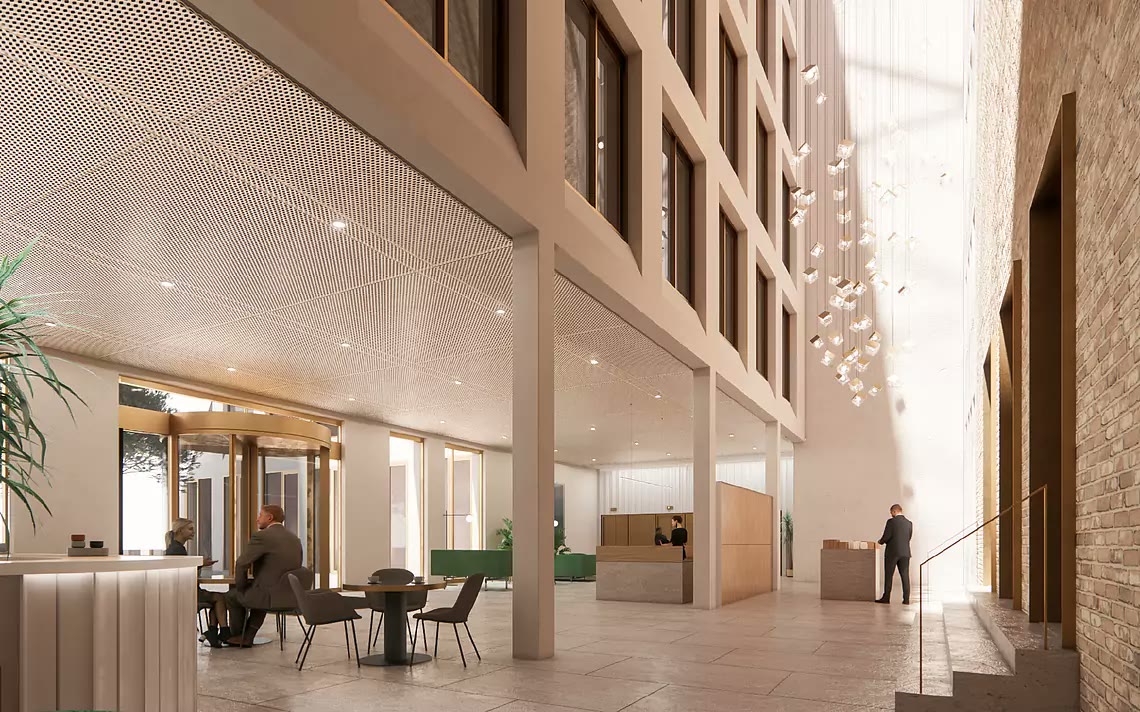 Ziel des Gesamtvorhabens ist es, durch die Kombination aus Bestandsgebäuden, Neubau und harmonisch eingebundenen Freianlagen ein gestalterisch abgestimmtes, lebendiges und urbanes Gebäudeensemble zu schaffen, das den Standort sinnvoll ergänzt und stärkt. Basierend auf dem Entwurf von GRAFT Gesellschaft von Architekten mbH erstellen wir die Ausführungsplanung.