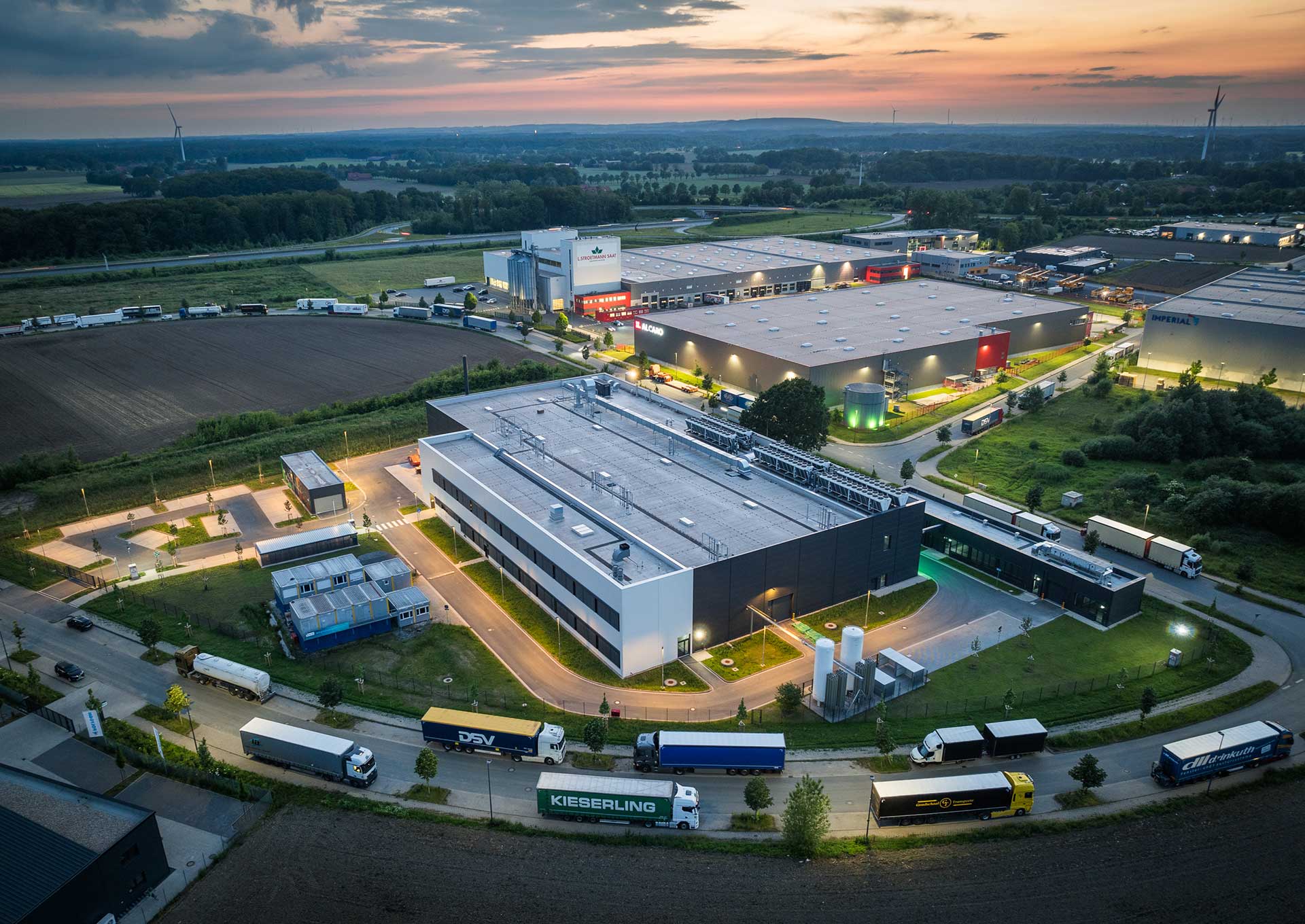Nach nur neun Monaten Bauzeit wurde im Februar 2024 der erste Bauabschnitt fertiggestellt. Ein spezielles Energie- und Gebäudekonzept war erforderlich, um den Bedarfen gerecht zu werden. So wurden sechs Trafos (je 1 MW), eine mit natürlichem Kältemittel betriebene Wärmepumpe sowie drei Kältemaschinen mit niedrigem Treibhauspotenzial (3,3 MW) sowie sechs Rückkühler installiert.