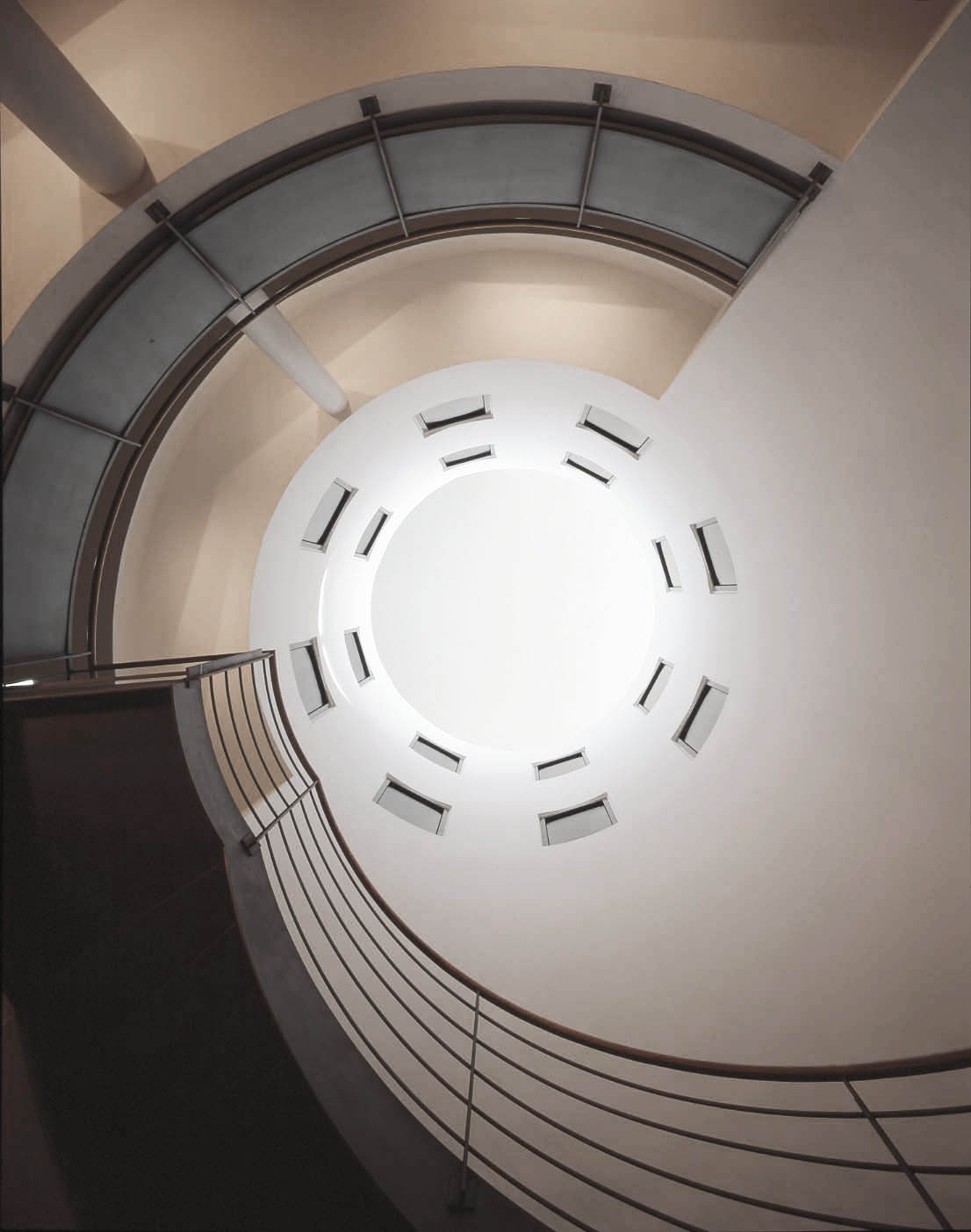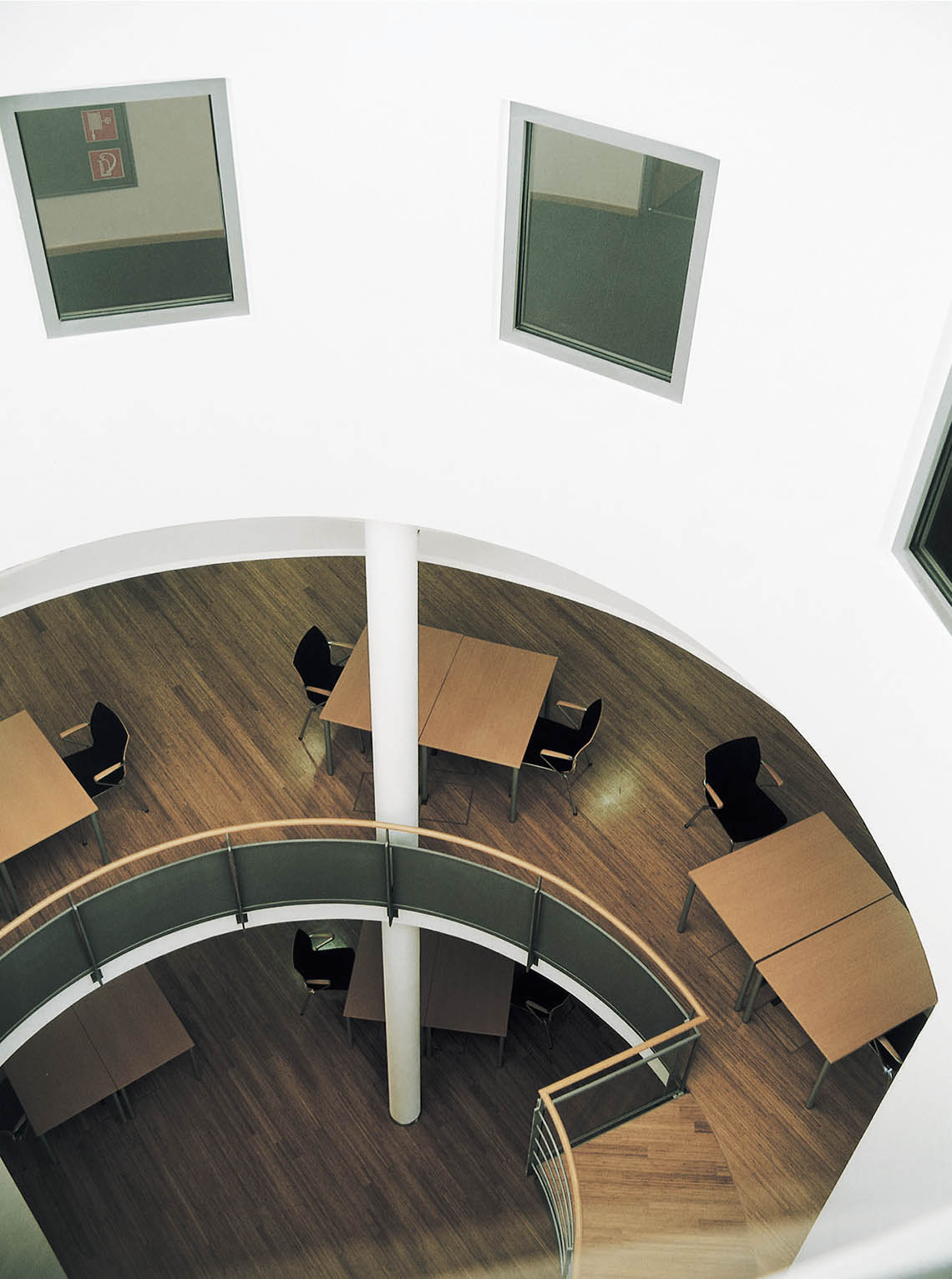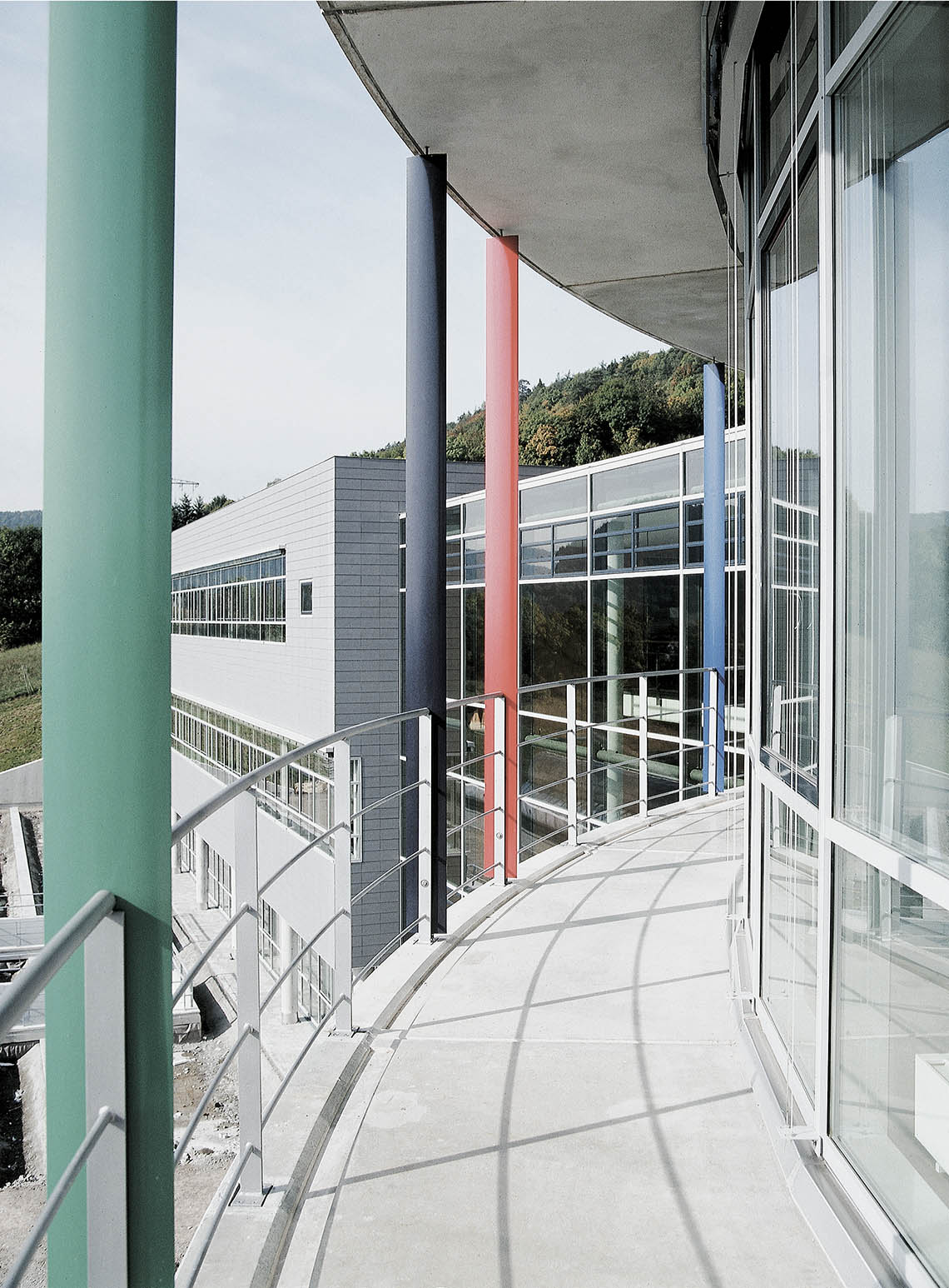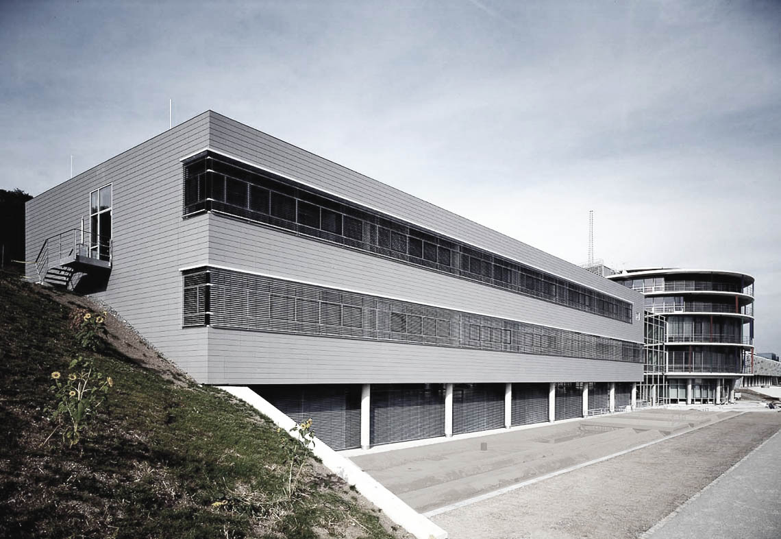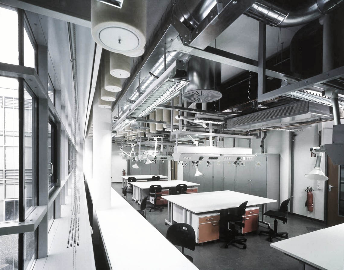 Ein Rundbau sowie zwei Linearbaukörper werden mit einer dreigeschossigen Halle zu einem homogenen Gesamtkonstrukt verbunden. Der multifunktionale Rundbau beinhaltet u.a. einen Hörsaal für 115 Personen. In den beiden anderen Bauteilen sind jeweils eine experimentelle Abteilung, wissenschaftliche Servicebereiche, Seminarräume und die Verwaltung untergebracht.