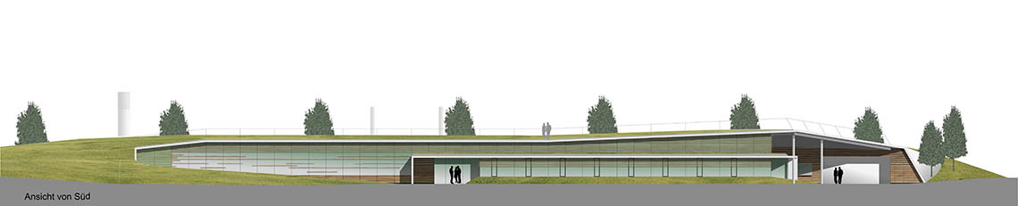 Die Hanglage wird genutzt, um das Laborgebäude nahezu unter einer intensiven Dachbegrünung verschwinden zu lassen. So entsteht ein fließender Übergang von Architektur zu Landschaft. Die großzügige Eingangsfassade öffnet sich nach Osten den Besuchern. Der Neubau mit durchdachter Laboranordnung erfüllt die komplexen Anforderungen und ist nachhaltig sowie umweltschonend konzipiert.