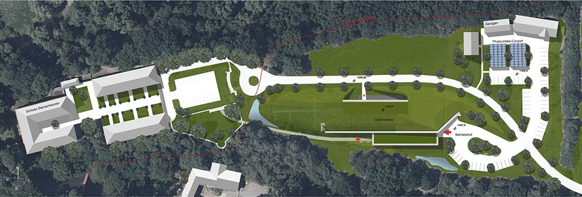 Das Kompetenzzentrum wird direkt an das Schloss-Ensemble Steinenhausen angrenzen und im Landschaftsschutzgebiet „Unteres Rotmaintal“ liegen. Somit müssen die behördlichen Auflagen strikt eingehalten werden und der Neubau muss sich harmonisch in die landschaftlich geprägte Umgebung einfügen.