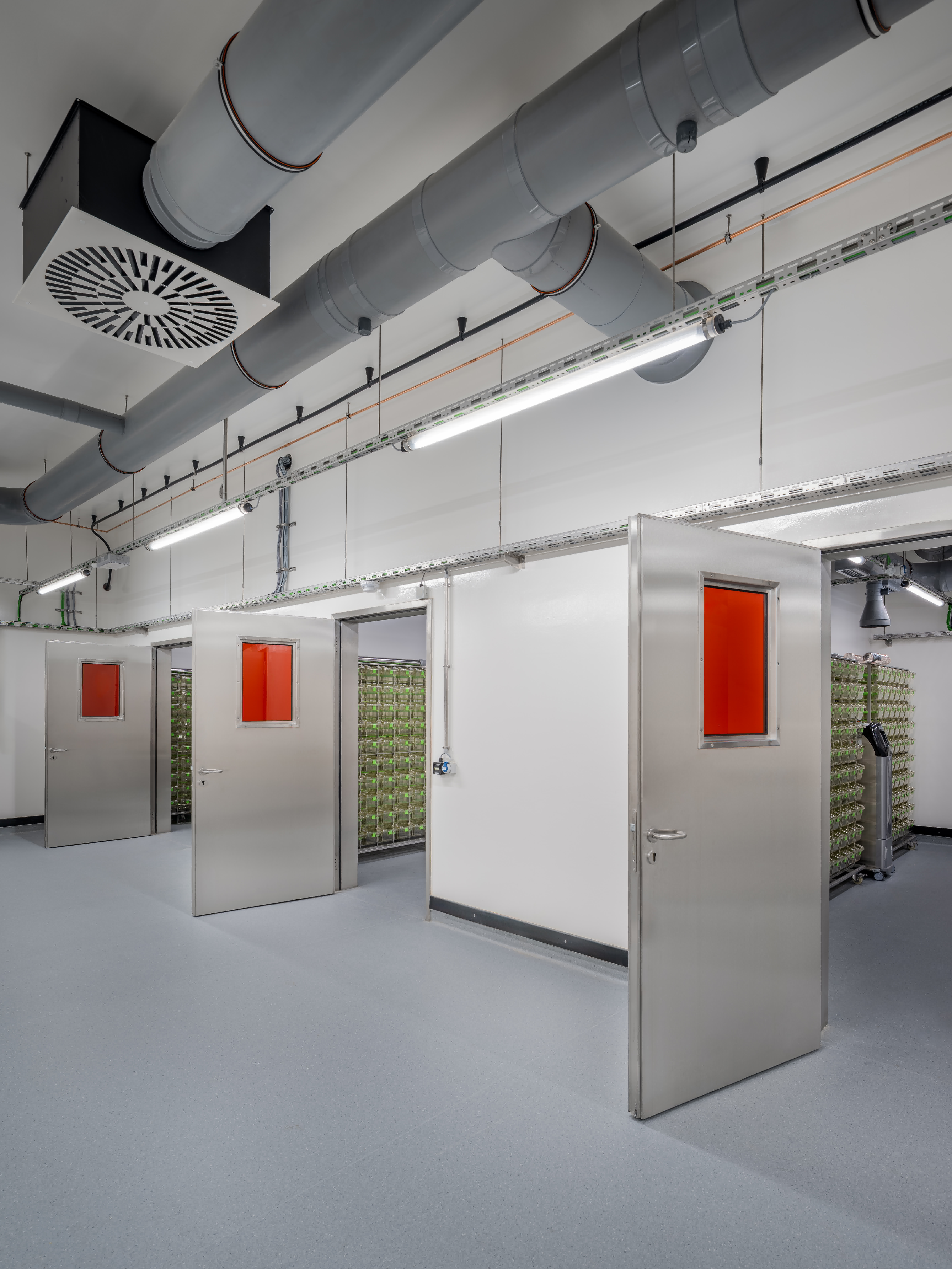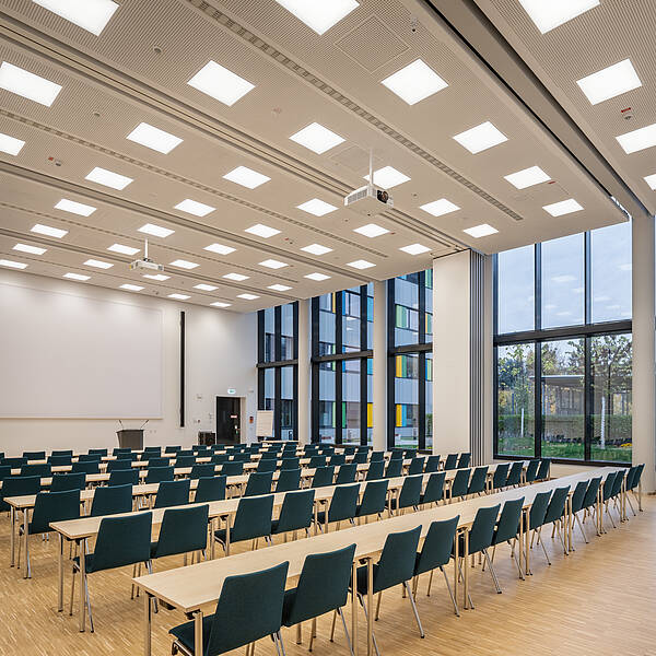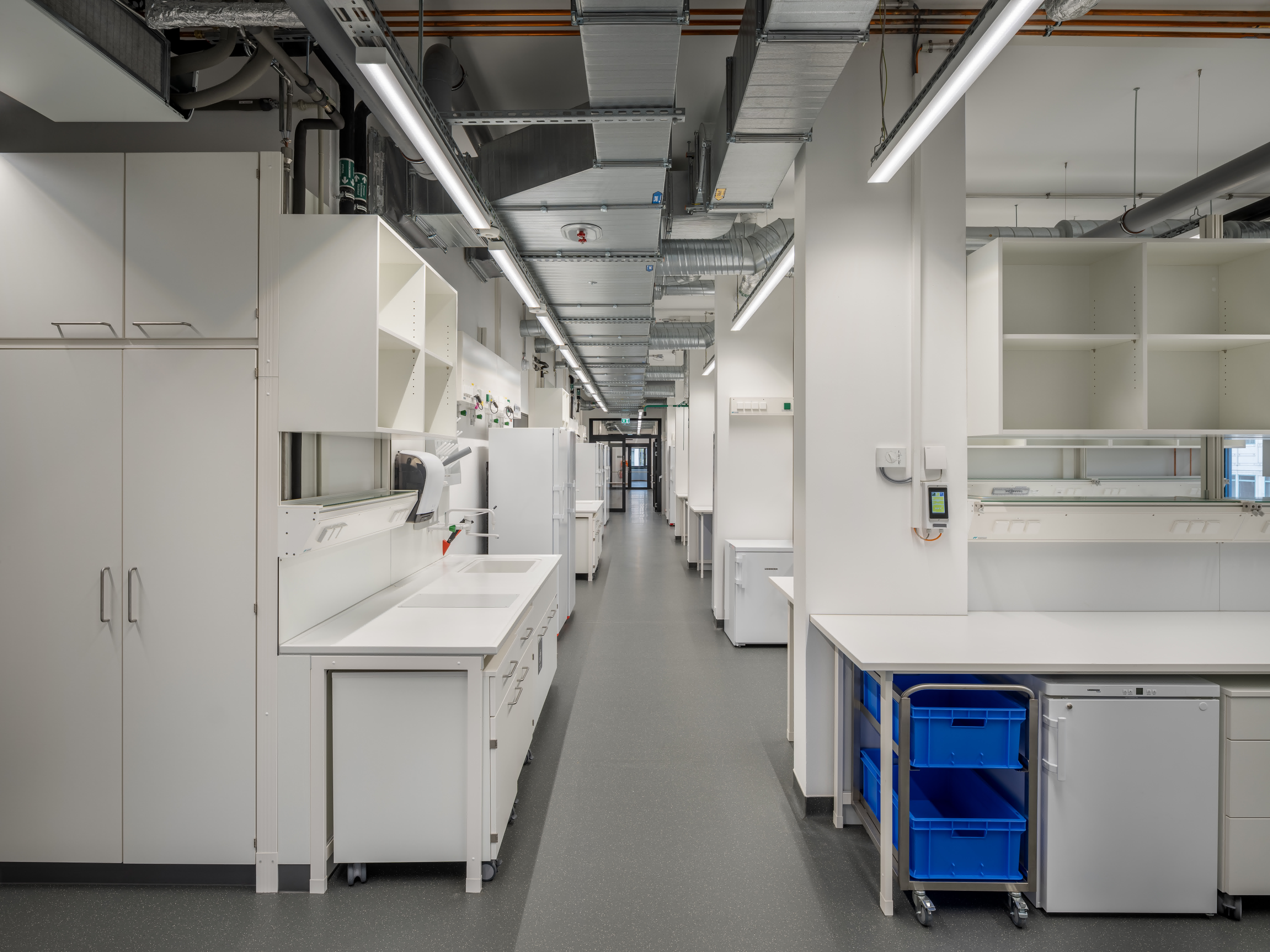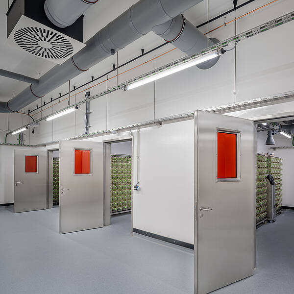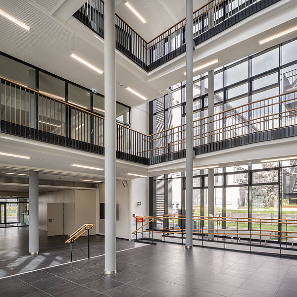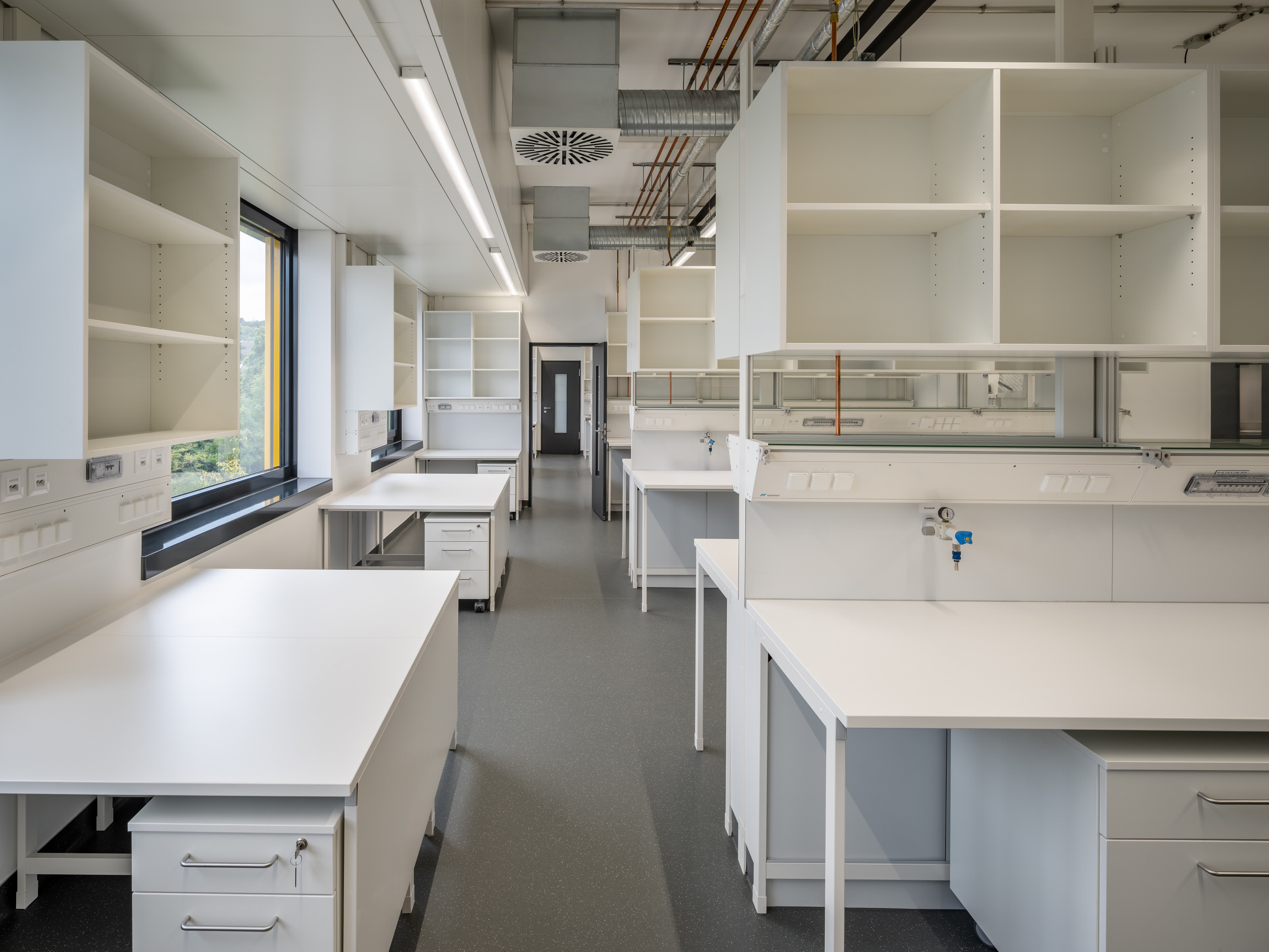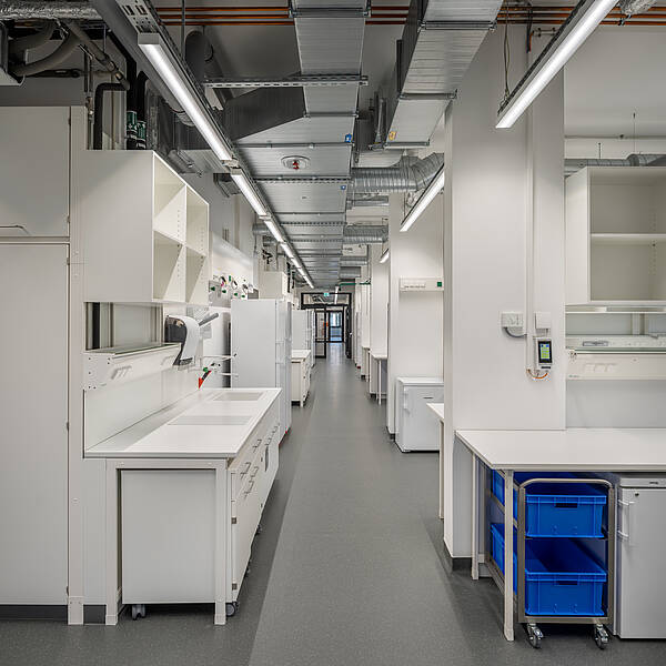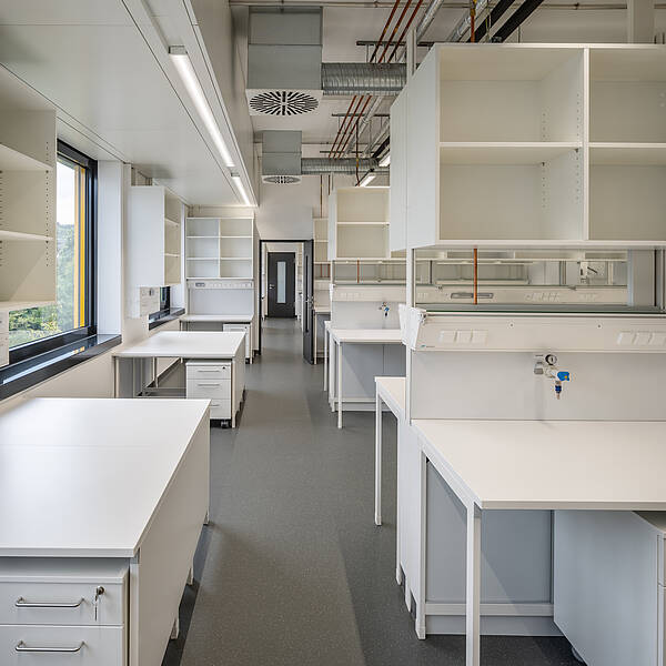 Der Laborbereich beinhaltet verschiedene Formen der Labornutzung. Diese können variabel angeordnet werden. So sind einzelne Laborzellen, aber auch offene Laborlandschaften ausführbar. Der Multifunktionsraum ist in unterschiedliche Größen teilbar. Er bildet die Mitte des Gesamtensembles. Durch großzügige Öffnungen ist er zusammen mit dem Foyer und einer Außenterrasse flexibel nutzbar.