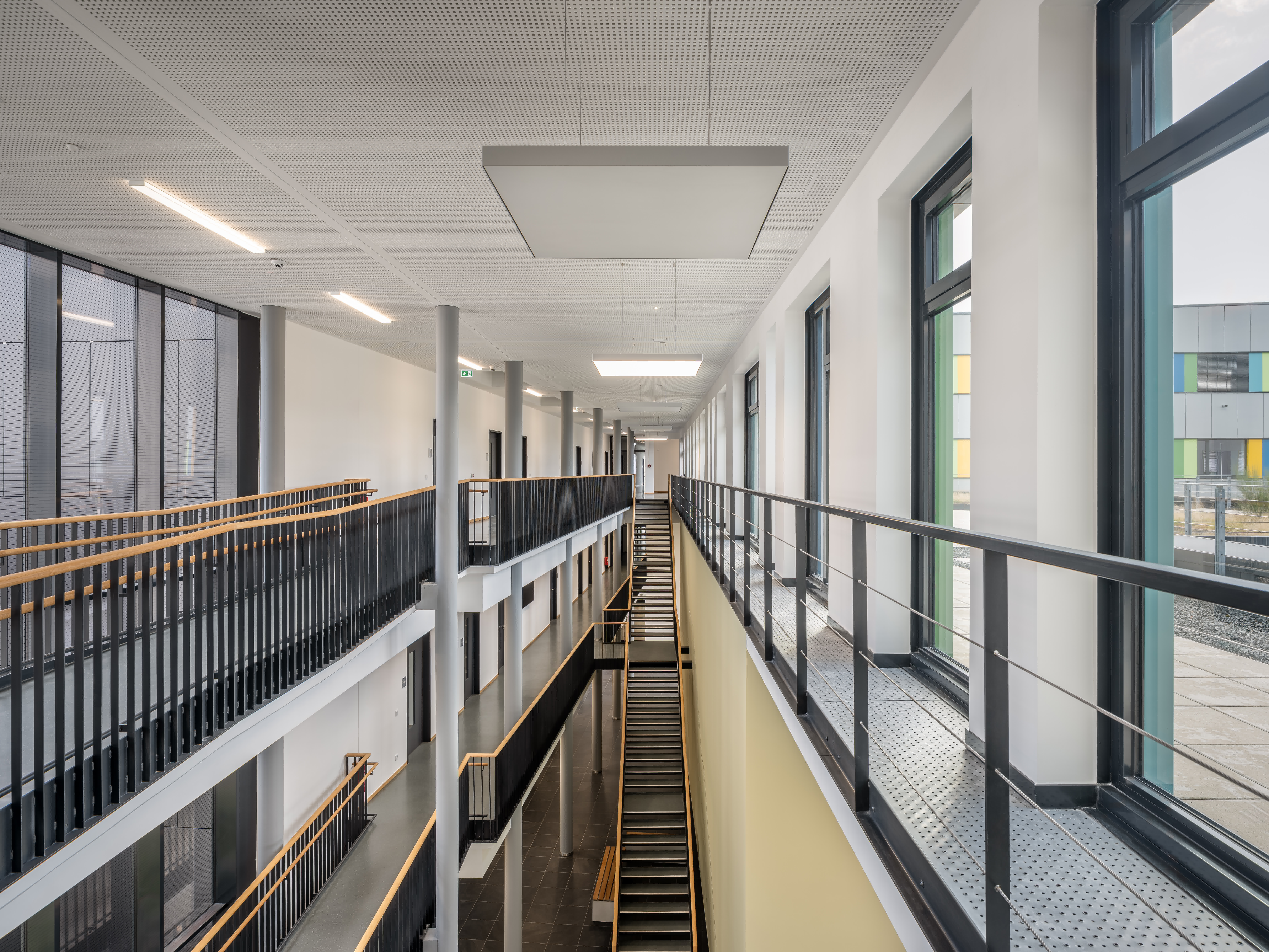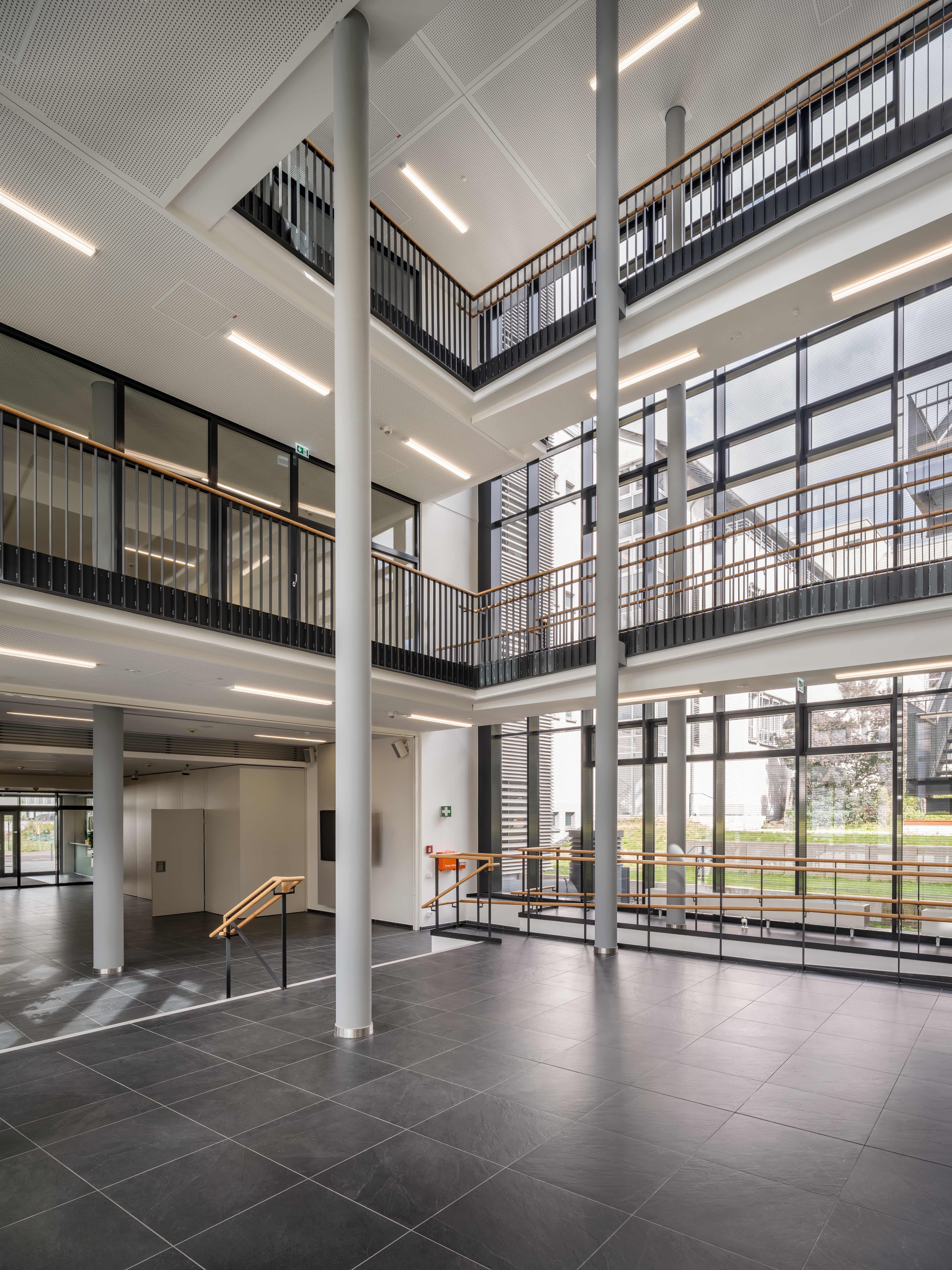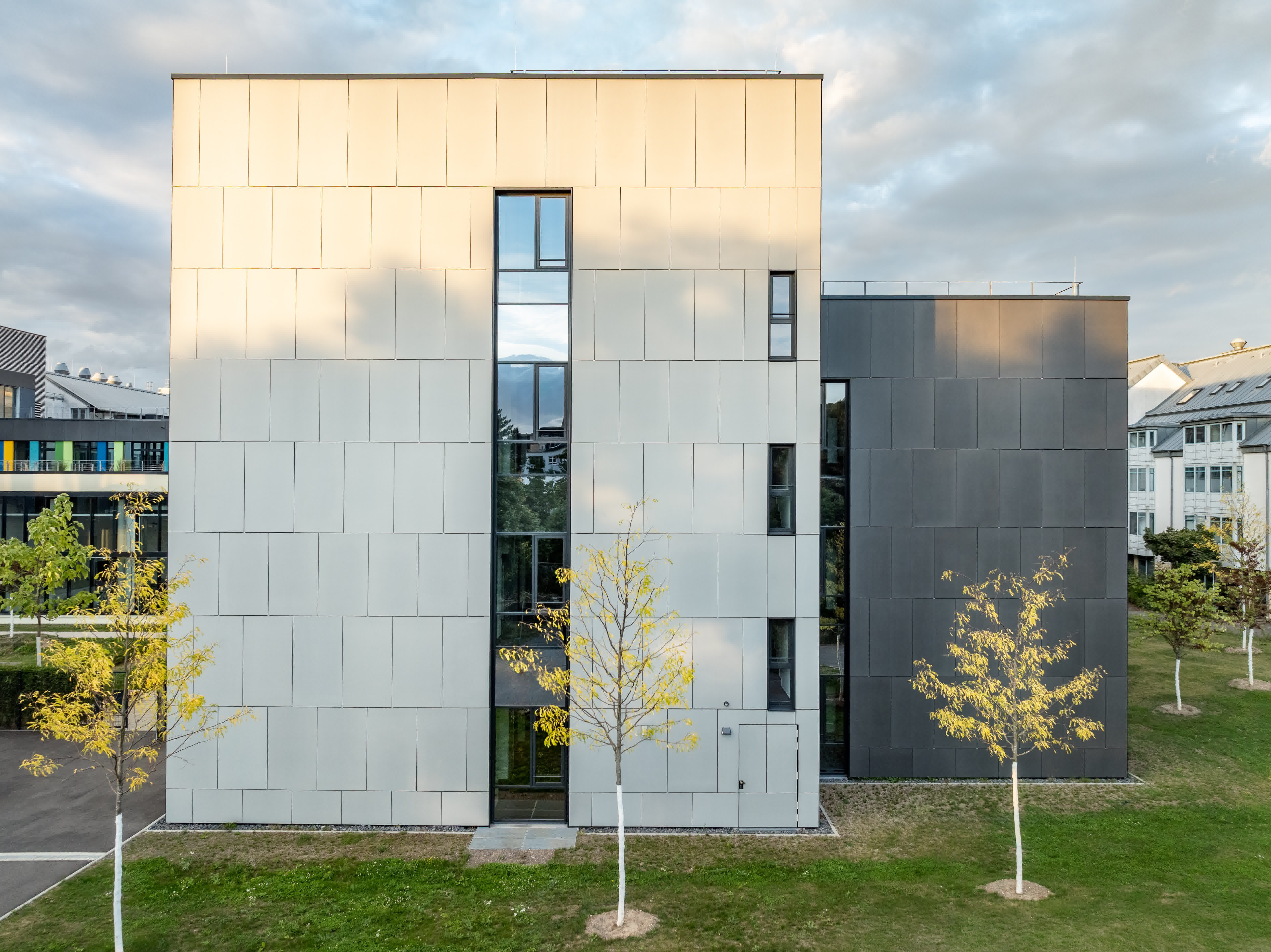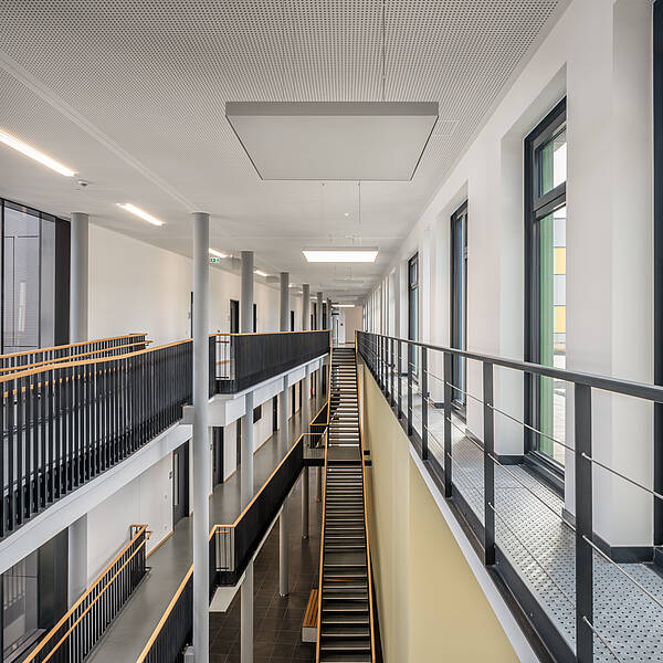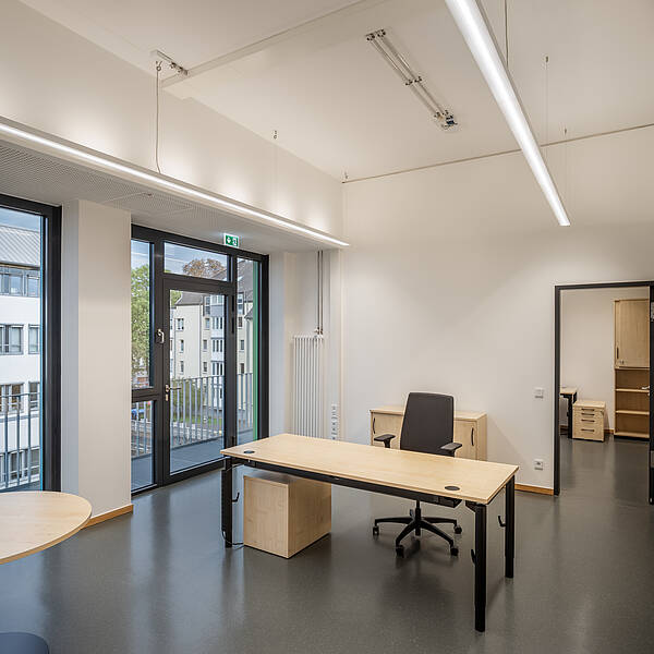 Der Laborbereich beinhaltet verschiedene Formen der Labornutzung. Diese können variabel angeordnet werden. So sind einzelne Laborzellen, aber auch offene Laborlandschaften ausführbar. Der Multifunktionsraum ist in unterschiedliche Größen teilbar. Er bildet die Mitte des Gesamtensembles. Durch großzügige Öffnungen ist er zusammen mit dem Foyer und einer Außenterrasse flexibel nutzbar.