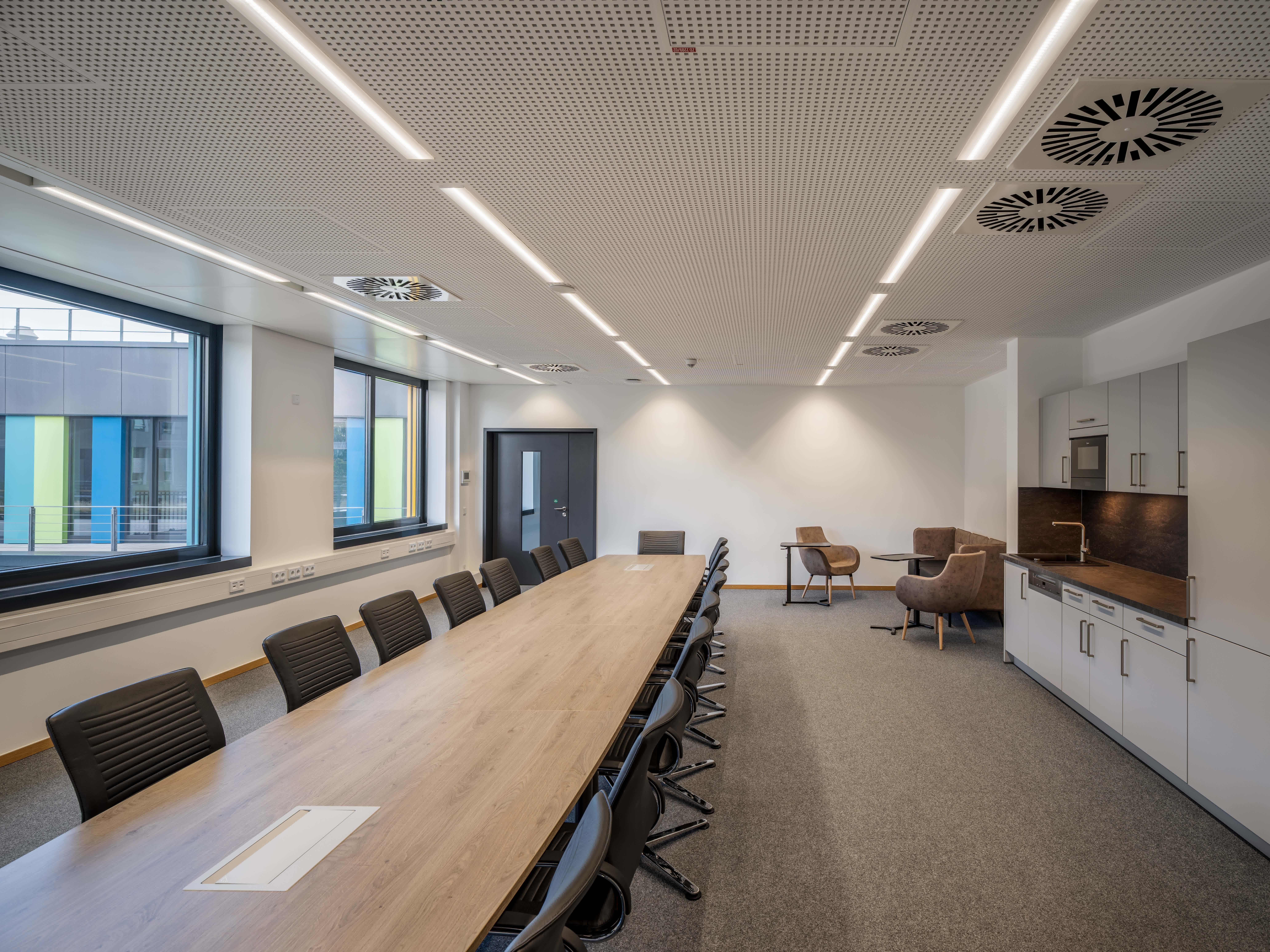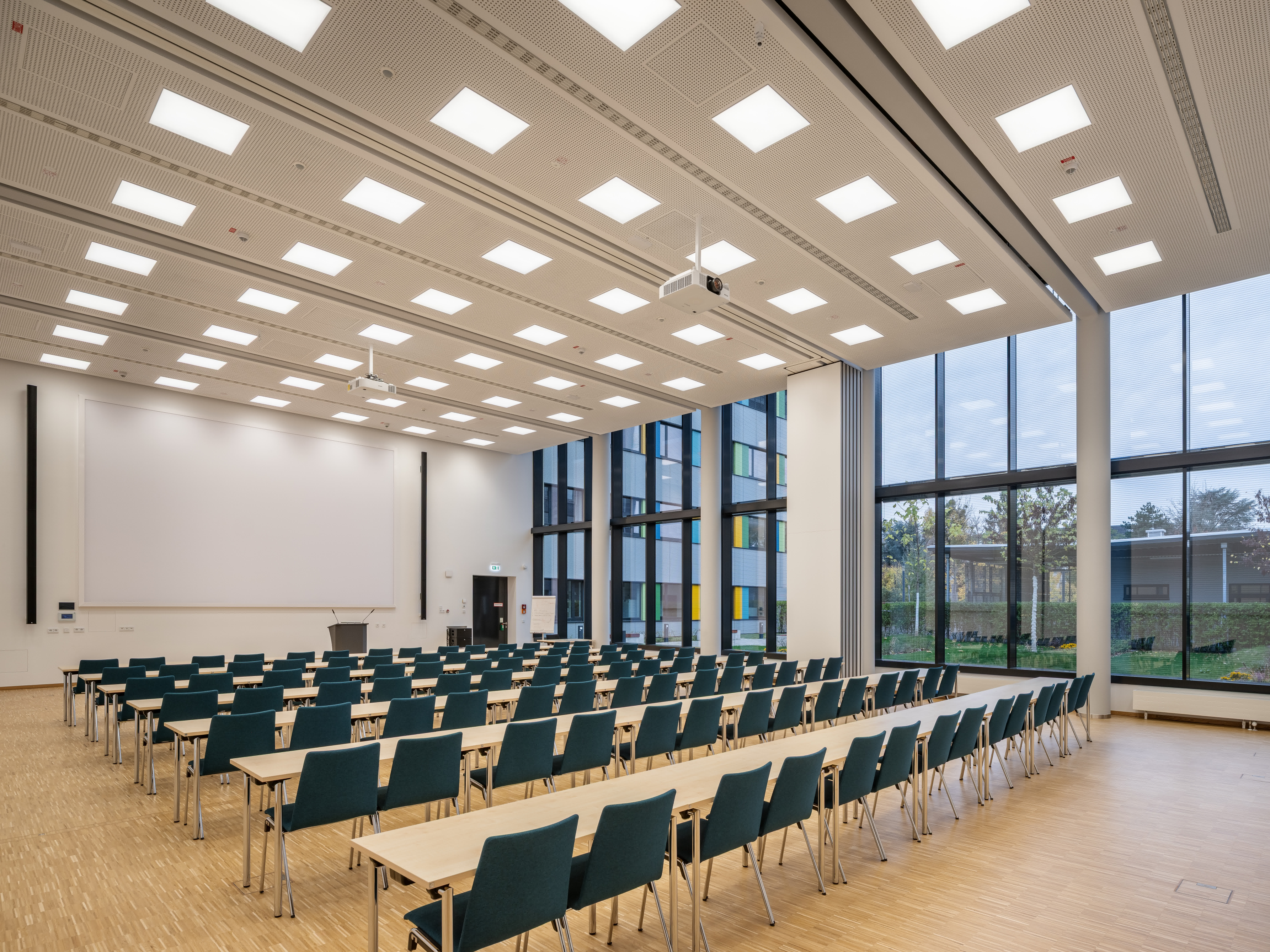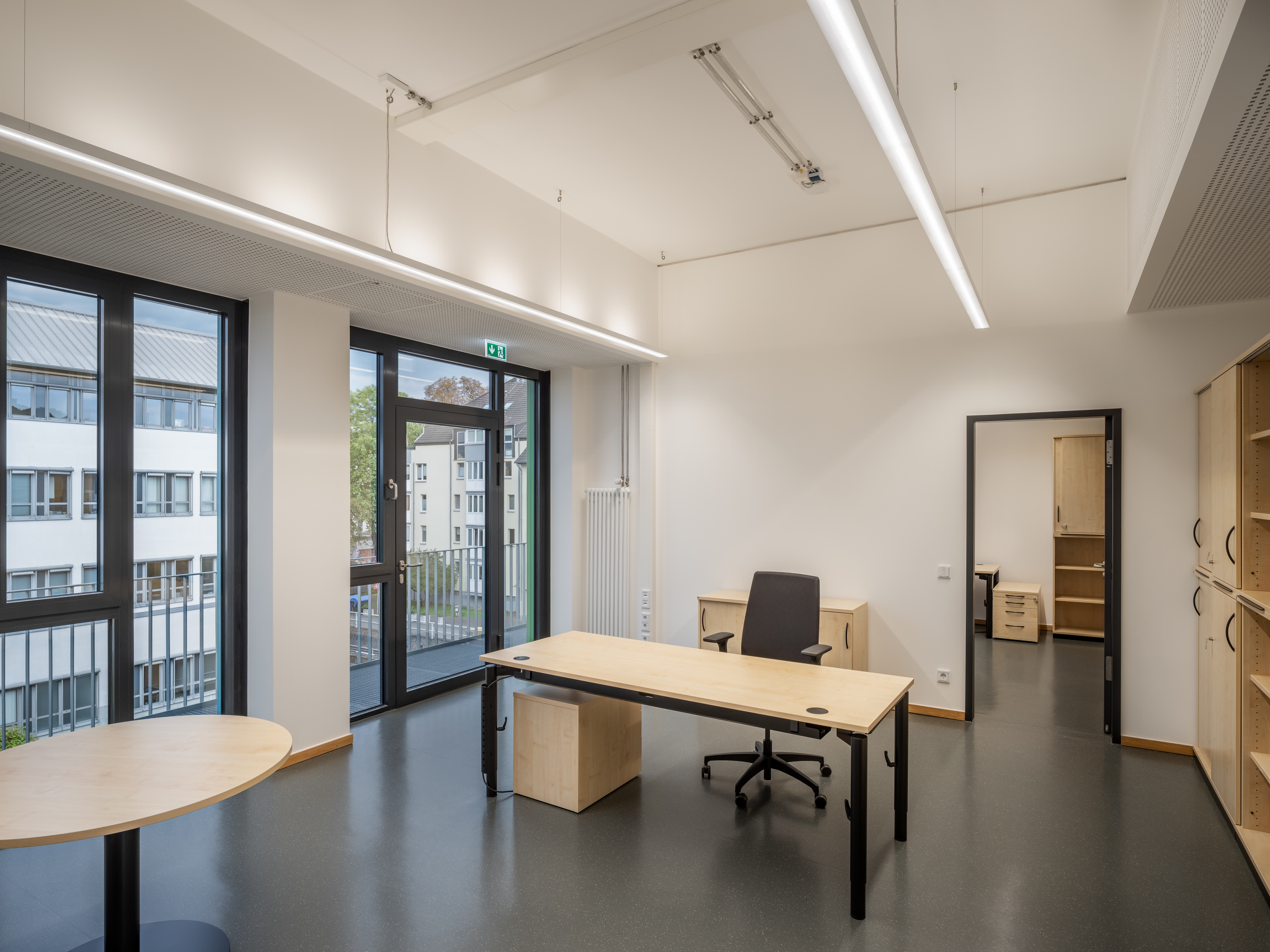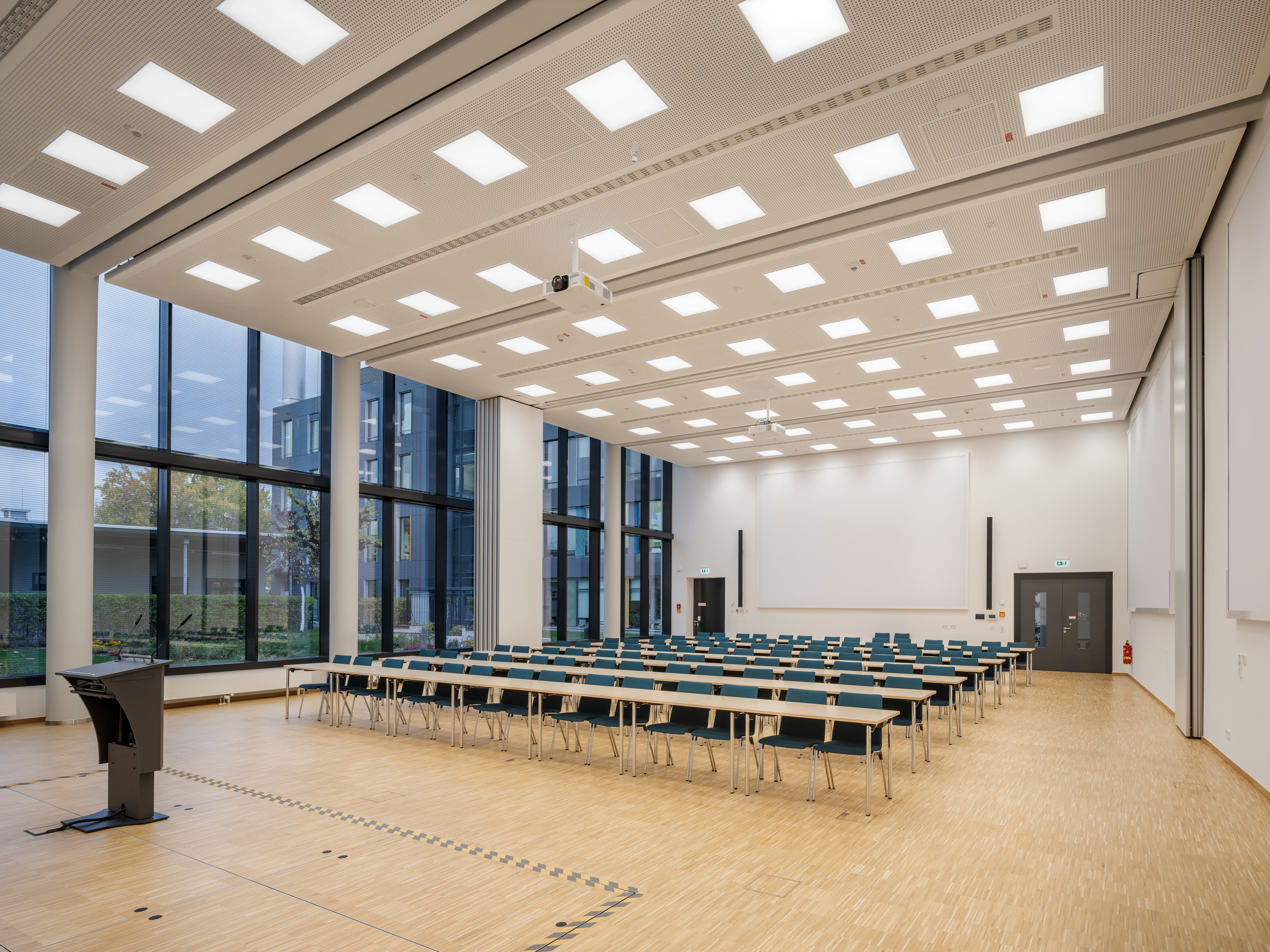 Der Laborbereich beinhaltet verschiedene Formen der Labornutzung. Diese können variabel angeordnet werden. So sind einzelne Laborzellen, aber auch offene Laborlandschaften ausführbar. Der Multifunktionsraum ist in unterschiedliche Größen teilbar. Er bildet die Mitte des Gesamtensembles. Durch großzügige Öffnungen ist er zusammen mit dem Foyer und einer Außenterrasse flexibel nutzbar.