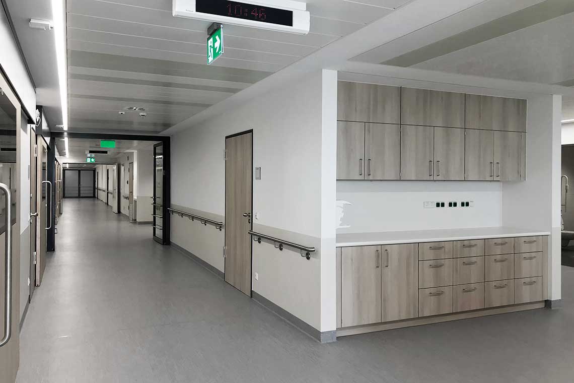 Um die Sanierung der Bestandsflächen ermöglichen zu können, wird in einem ersten Schritt ein Modulgebäude mit zwei Stationen, davon eine geschlossene Abteilung für Suchterkrankte, errichtet. Danach folgen der Erweiterungsbau sowie die Sanierung der bestehenden Gebäude in zwei Abschnitten.